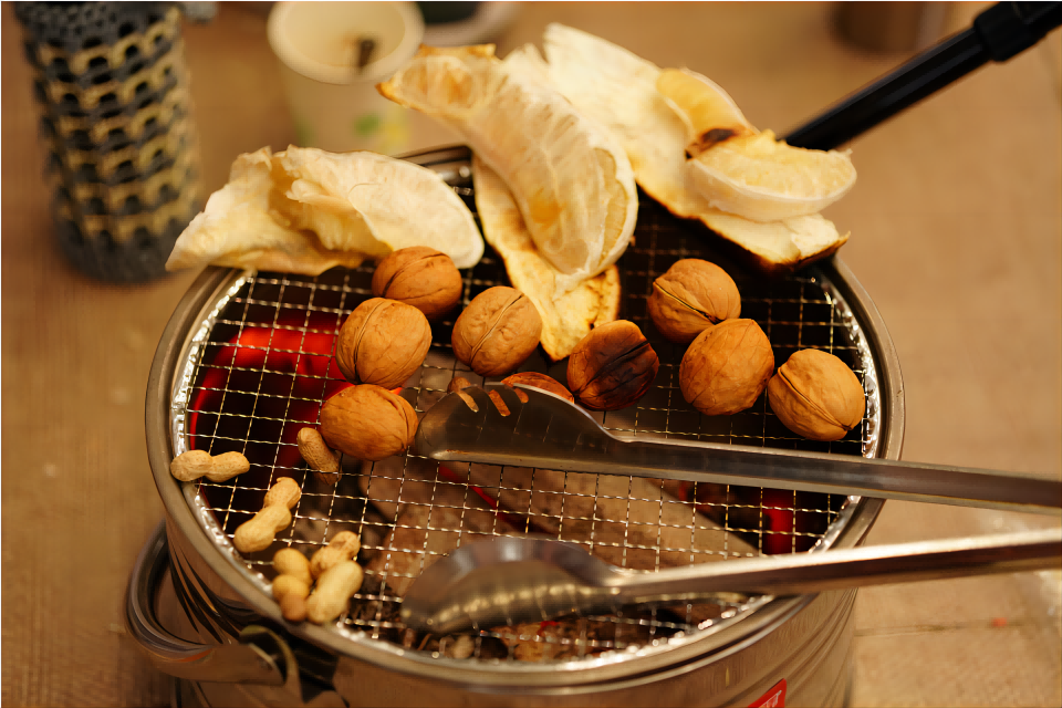 窗外北風呼嘯,寒氣逼人,與屋內(nèi)地暖形成鮮明的對比,室內(nèi)我們和長者們圍坐一堂,點上火爐、燒上一壺具有地域特色的芝麻豆子茶,烤點今年豐收的紅薯和花生紅棗,再一起閑聊家常、開懷大笑,真是冬日里不可多得的美好!