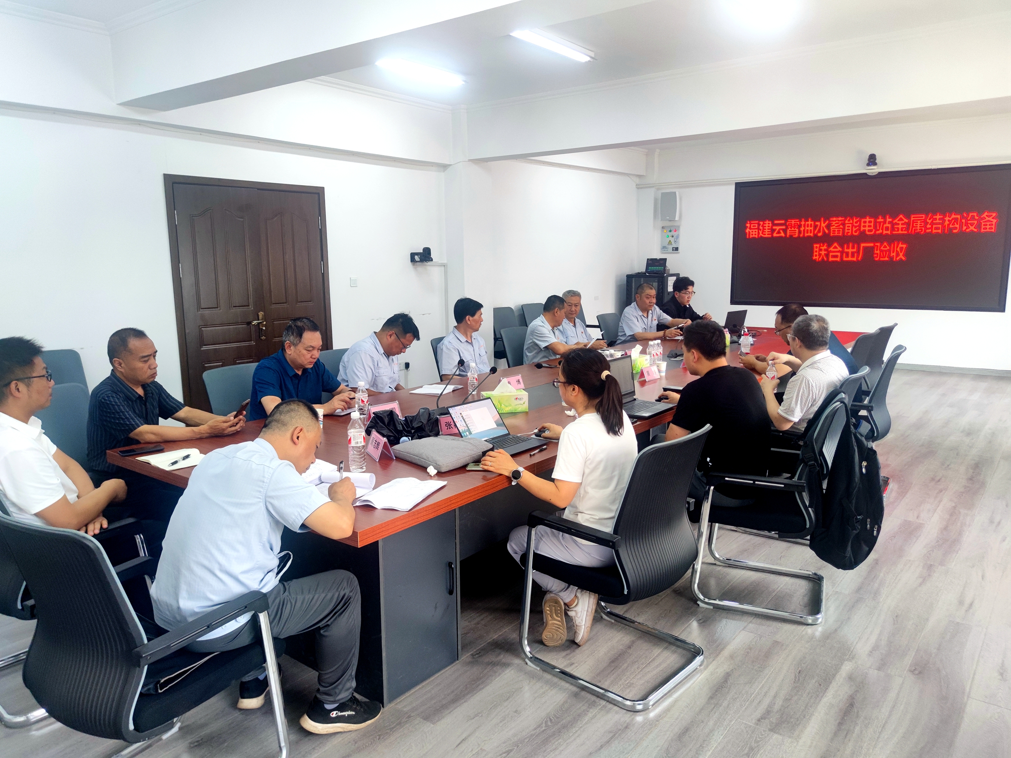 2025年6月9-11日,中核國電漳州能源有限公司在三門峽新華水工機械有限責(zé)任公司組織召開《福建云霄抽水蓄能電站金屬結(jié)構(gòu)設(shè)備采購合同》啟閉機設(shè)備聯(lián)合出廠驗收會。本次驗收設(shè)備共八臺套,主要包含:上水庫進/出水口事故閘門2X 2500kN固定卷揚式啟閉機及附件(2套)、下水庫進/出水口檢修閘門2X2500kN固定卷揚式啟閉機及附件(2套)、下水庫溢洪道工作閘門2X400kN固定卷揚式啟閉機及附件(2套)、下水庫溢洪道檢修閘門2X400kN臺車式啟閉機及附件(1套)、下水庫放水底孔進口事故閘門630kN固定卷揚式啟閉機及附件(1套)。參加聯(lián)合驗收的單位有中核工程咨詢有限公司、西安熱工研究院有限公司、廣東省水利電力勘測設(shè)計研究院有限公司、中國電建集團北京勘測設(shè)計研究院有限公司及我公司的相關(guān)人員。